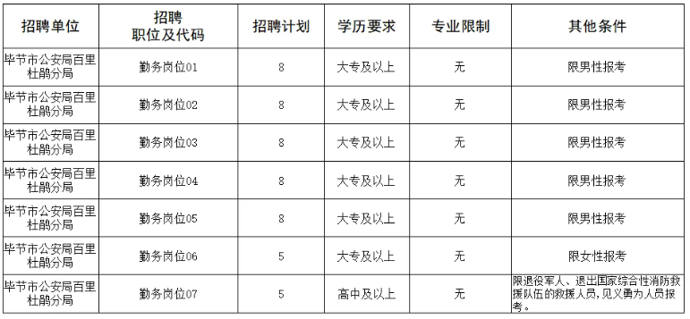 附件1:畢節(jié)市公安局百里杜鵑分局2025年面向社會(huì)公開招聘警務(wù)輔助人員職位表